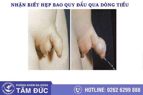 – Biểu hiện hẹp bao quy đầu xác thực nhất là đầu dương vật căng phồng khi tiểu.
