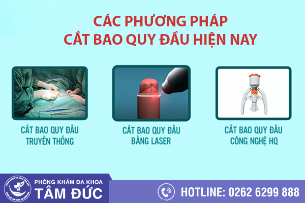Thực hiện cắt bao quy đầu có nhiều phương pháp khác nhau, phụ thuộc từng nguyên nhân gây bệnh cũng như tình trạng sức khoẻ ở nam giới. Các phương pháp cắt phổ biến hiện nay có thể kể đến đó là: