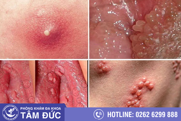 + Bộ phận sinh dục nam giới và nữ giới xuất hiện những mụn nước li ti mọc rải rác hay mọc thành từng đám.