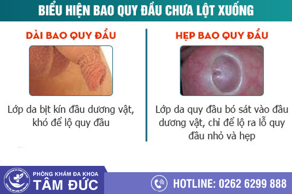 – Bao quy đầu chưa lột: Biểu hiện là lớp da & niêm mạc luôn trùm kín toàn bộ phần đầu dương vật, chỉ lộ phần quy đầu đủ để thoát nước tiểu.